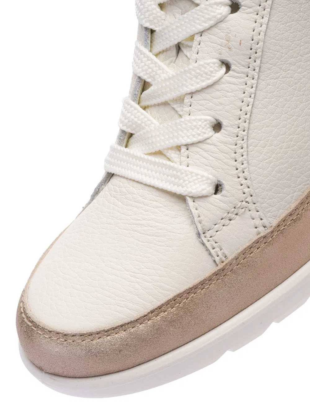 La semelle antidérapante offre une bonne adhérence, tandis que le talon compensé discret confère à la chaussure une touche sportive.