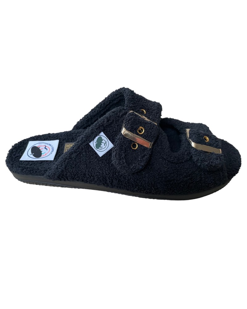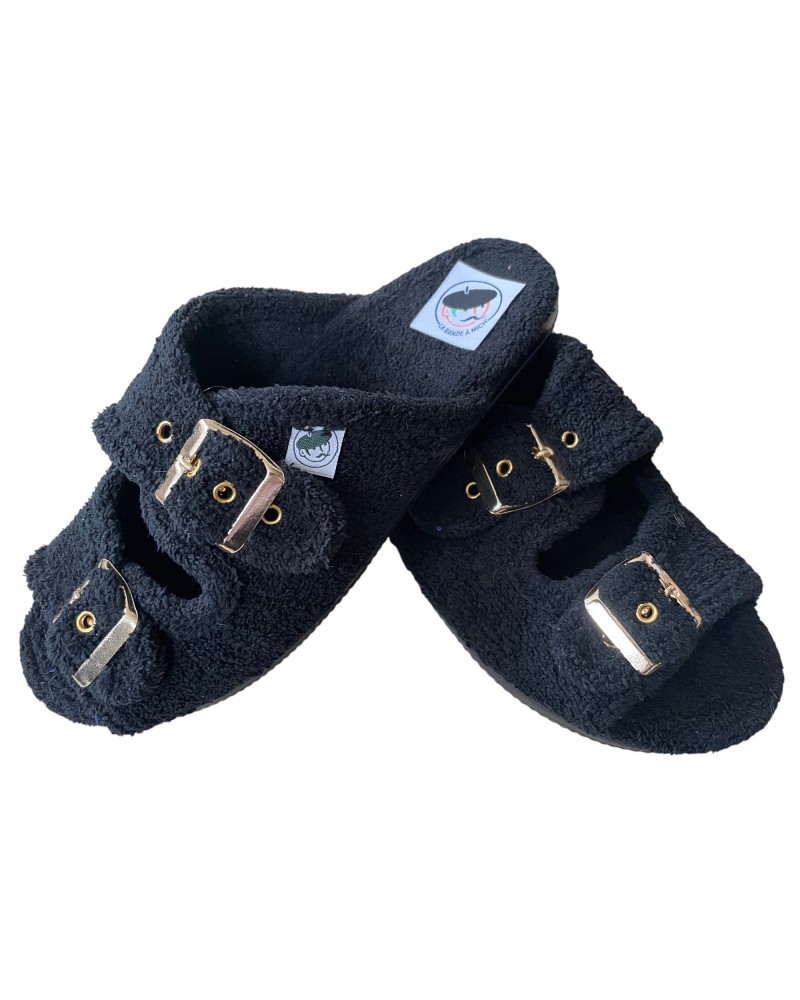 La Bande à Mich’ vous propose son chausson d’été pour femme, cette mule en éponge est souple et confortable. Elle vous offrira un bon maintien avec ses doubles boucles.