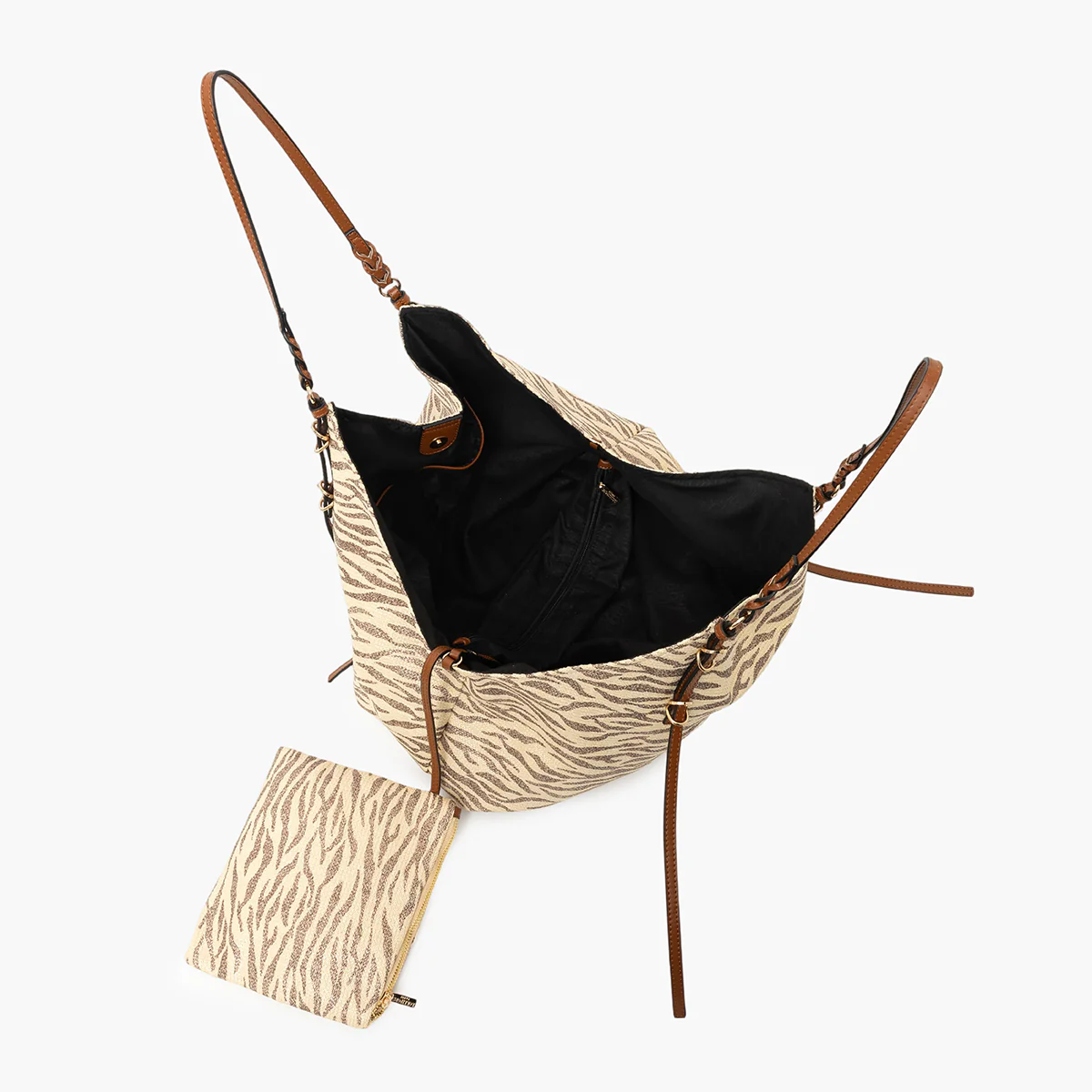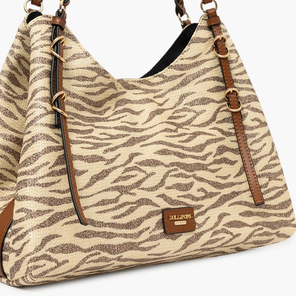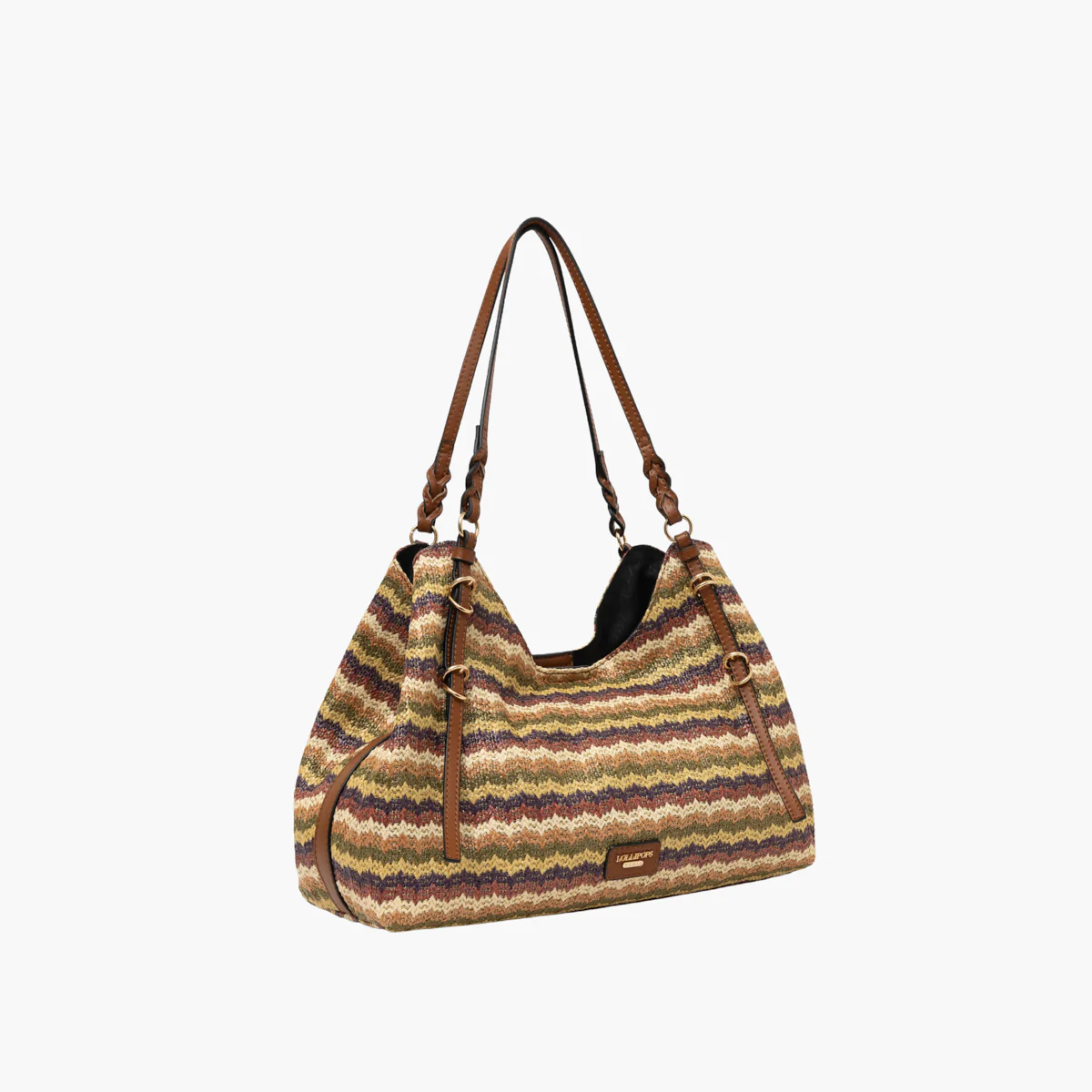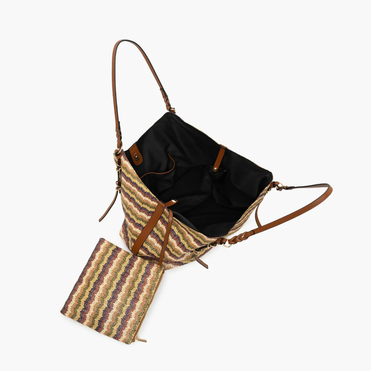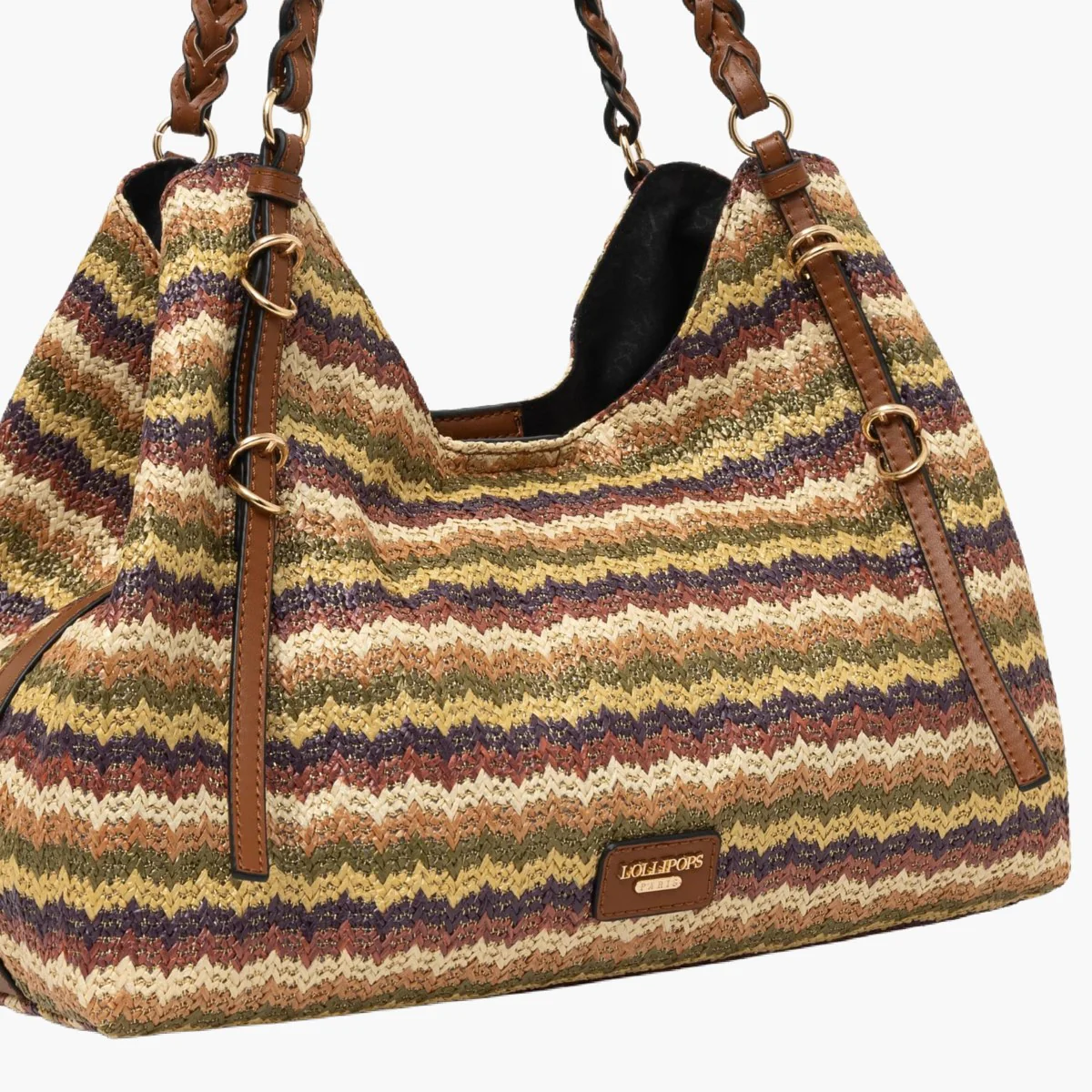 Sac shopper multicolore S-Ringo en paille papier et jacquard