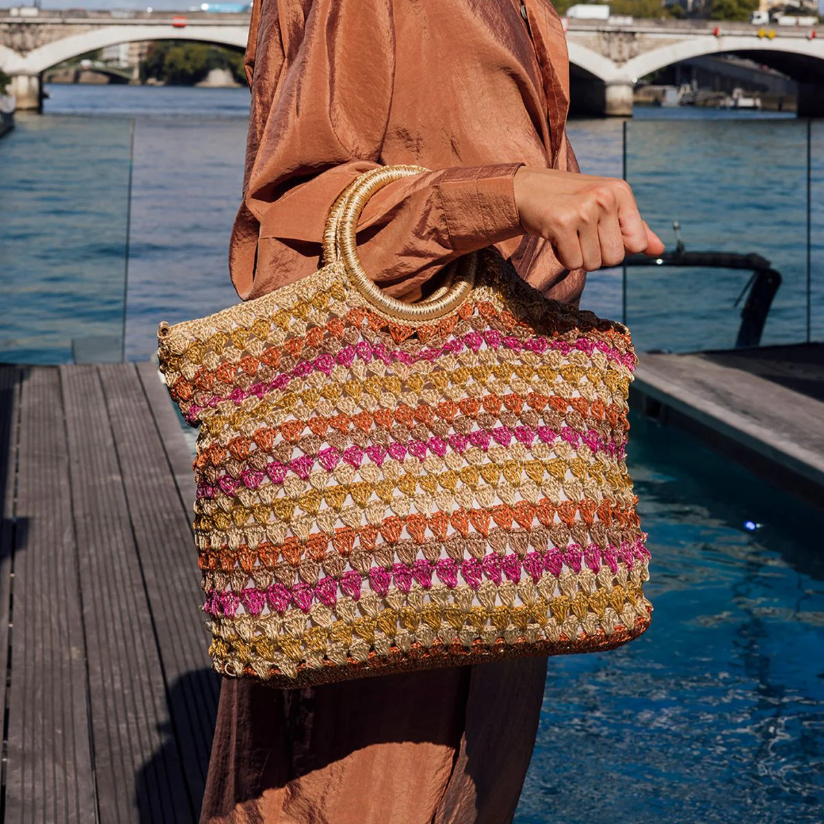 Sac shopper Sean multicolore en crochet avec fils métallisés