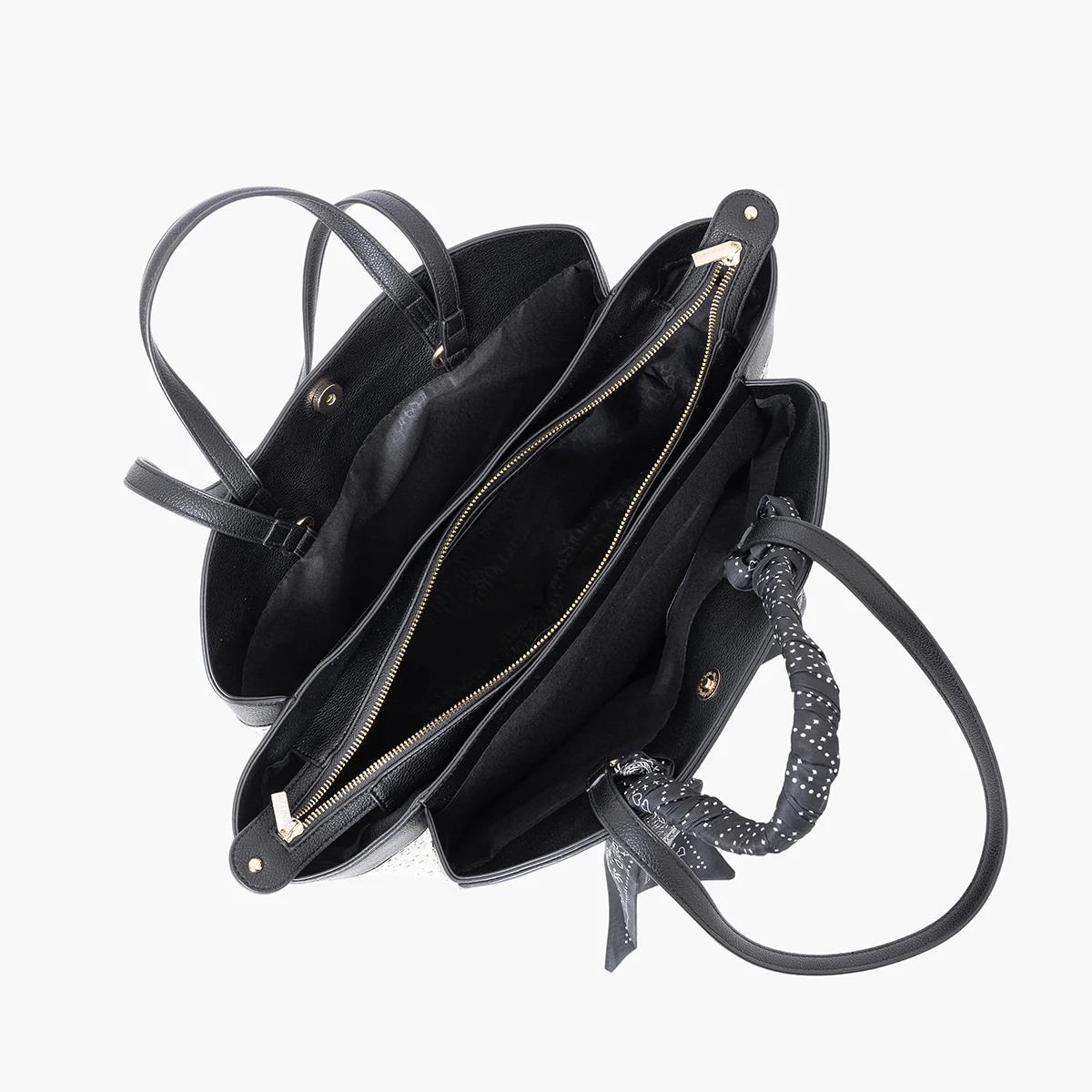 Sac shopping bimatière en simili cuir noir et canevas